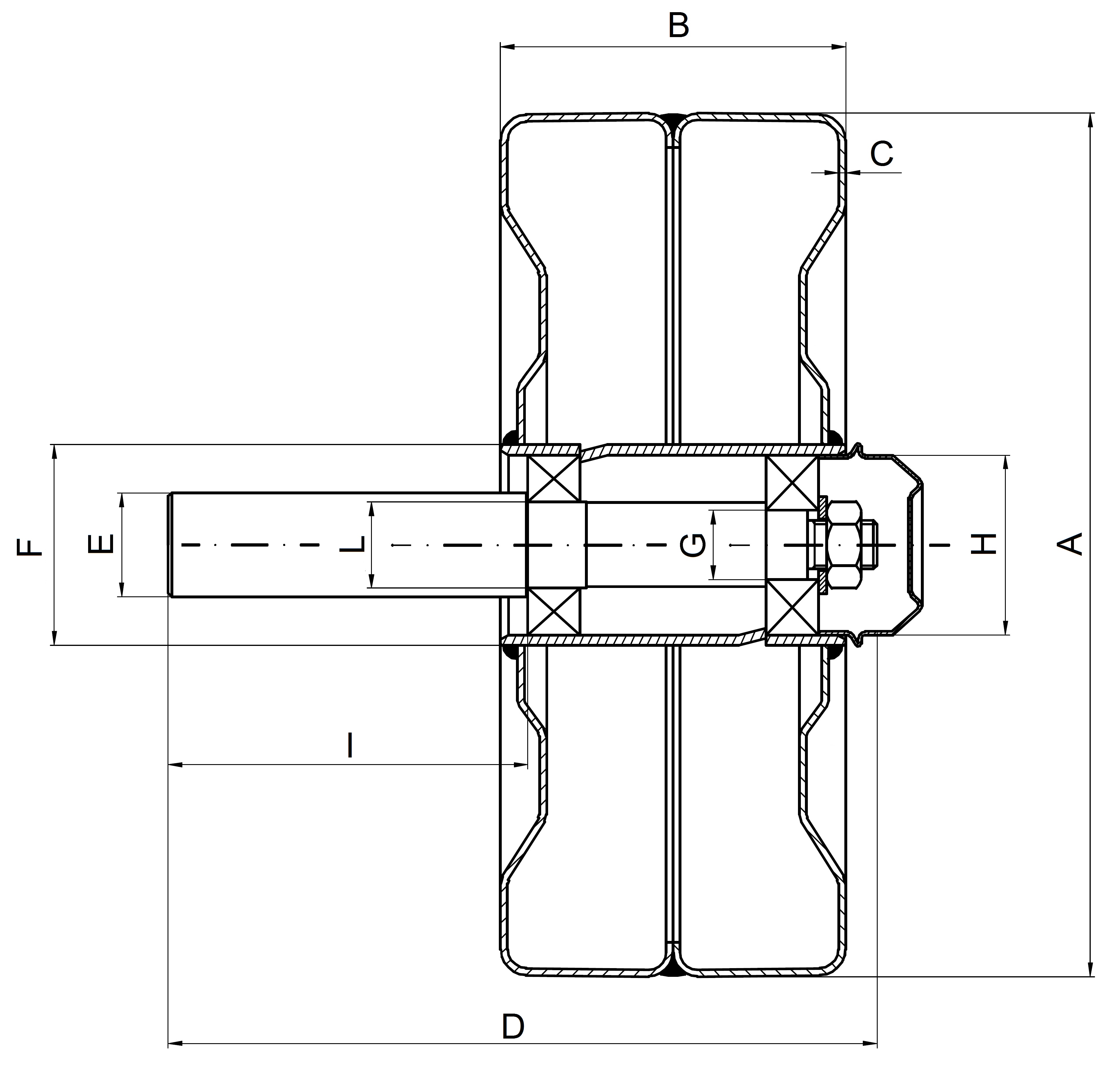Úvod » AMA AGRI » KOLESO S HRIADEĽOM NOSNOSŤ 700kg A250 B100 C2 D205 E30 F58 G20 H52 I104 L25mm